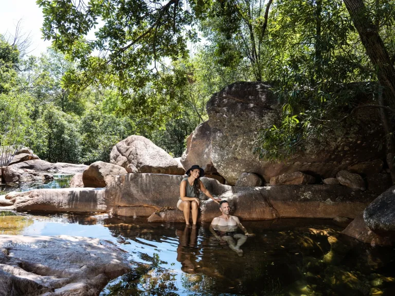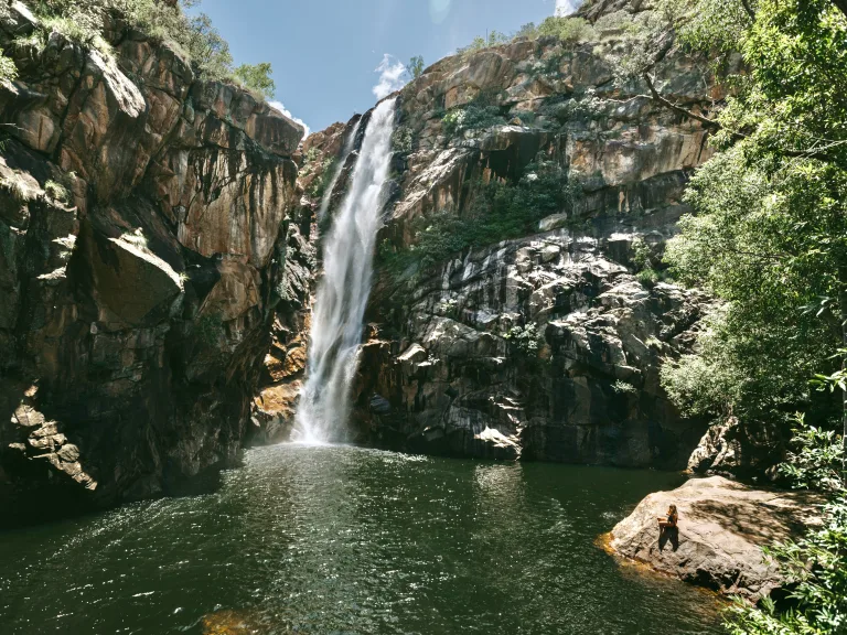 Best visited from December to March, its walking tracks lead to flowing waterfalls and lush forest. Boulder Creek offers a quick swim close to the carpark, with a nearby lookout over the South Alligator catchment. Services are over an hour away at Cooinda Lodge and Pine Creek, so come prepared with food, water, and essentials. Accessible via gravel road—AWD or 4WD may be needed—check seasonal access updates before you go.
