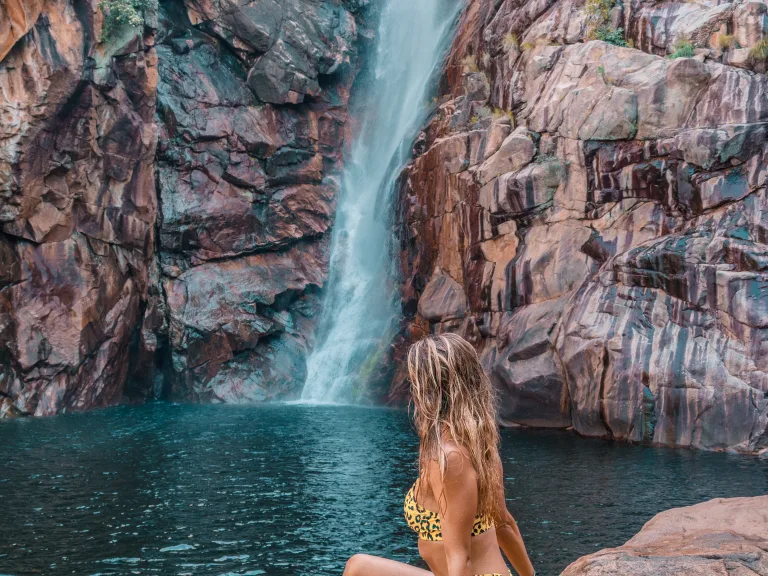Motor Car Falls is a hidden gem tucked deep within the southern hills of Kakadu National Park. Accessible year-round and particularly stunning in the Wet Season, this 7.5 km return hike takes you through lush monsoon forests, across rocky ridge-lines, and into one of Kakadu’s most rewarding swimming holes. As one of the only waterfalls accessible during the Wet Season, Motor Car Falls is a must-do for those seeking solitude, dramatic scenery, and a real outback adventure.