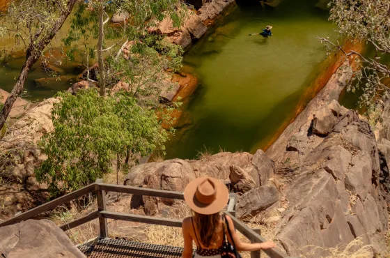 In its listing, The New York Times shines a spotlight on Gunlom Falls, describing it as Kakadu’s “crown jewel.” Famous for its dramatic escarpment setting, Gunlom’s upper plunge pool — perched high above the floodplains — delivers one of the most breathtaking infinity-pool views in Australia.