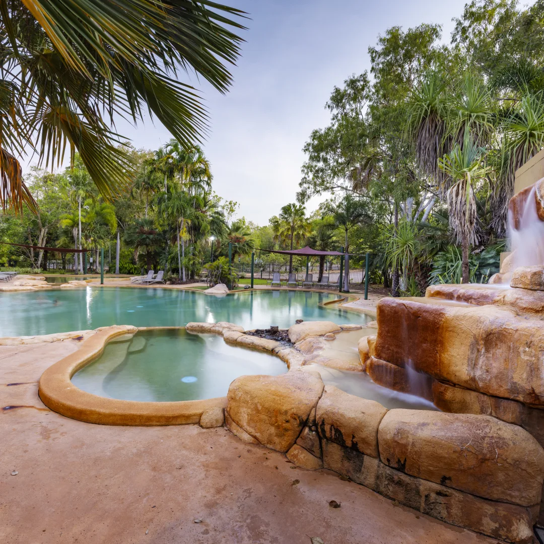 Boulder Creek Falls is a crystal-clear waterhole perfect for swimming, with a lower pool and a higher one for the more adventurous. Enjoy a shady picnic before heading to Moline Rockhole, a favourite spot with a beautiful waterfall and swim-friendly pool—arguably one of the most stunning spots in the sandstone country.
