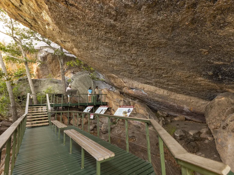Burrungkuy/Nourlangie is a cultural highlight of Kakadu, showcasing ancient rock art that tells stories of traditional life and early European contact. A 1.5 km circular walk, with wheelchair-accessible sections, guides visitors through this open-air gallery of shelters, artefacts, and paintings—bringing Kakadu’s rich heritage to life.