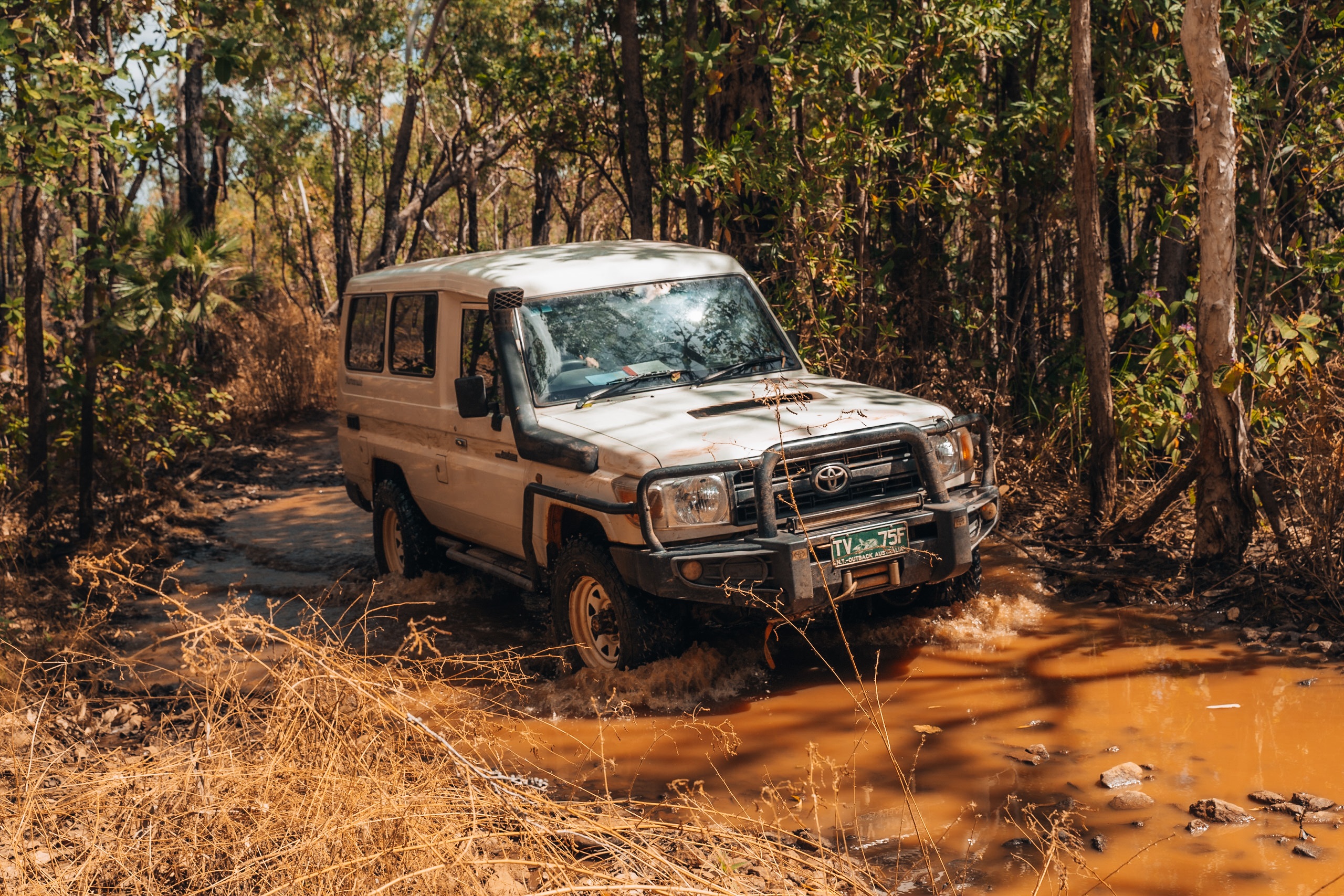 Expect corrugations, soft sand, and a deep-water crossing at Jim Jim Creek — 4WD experience is essential.