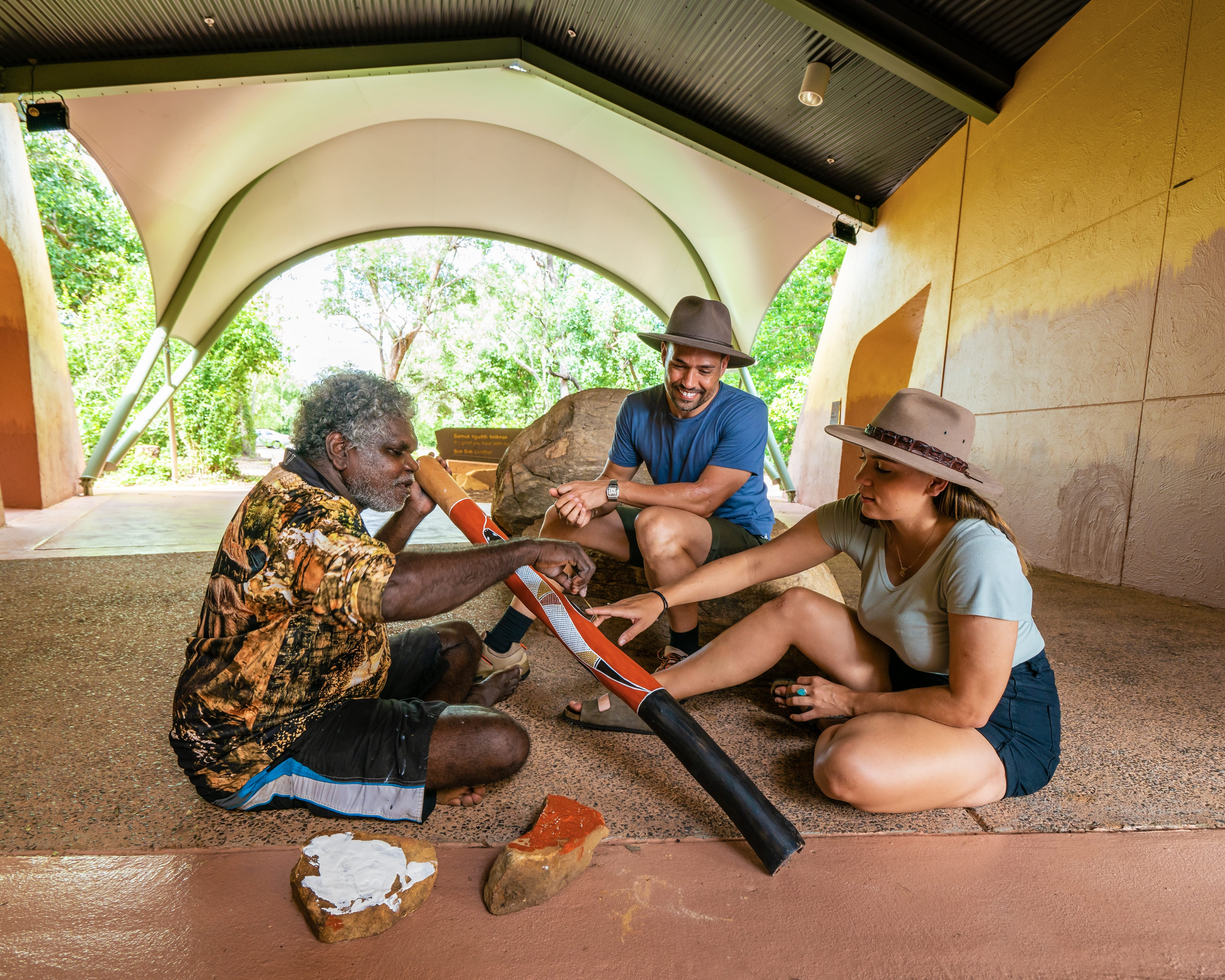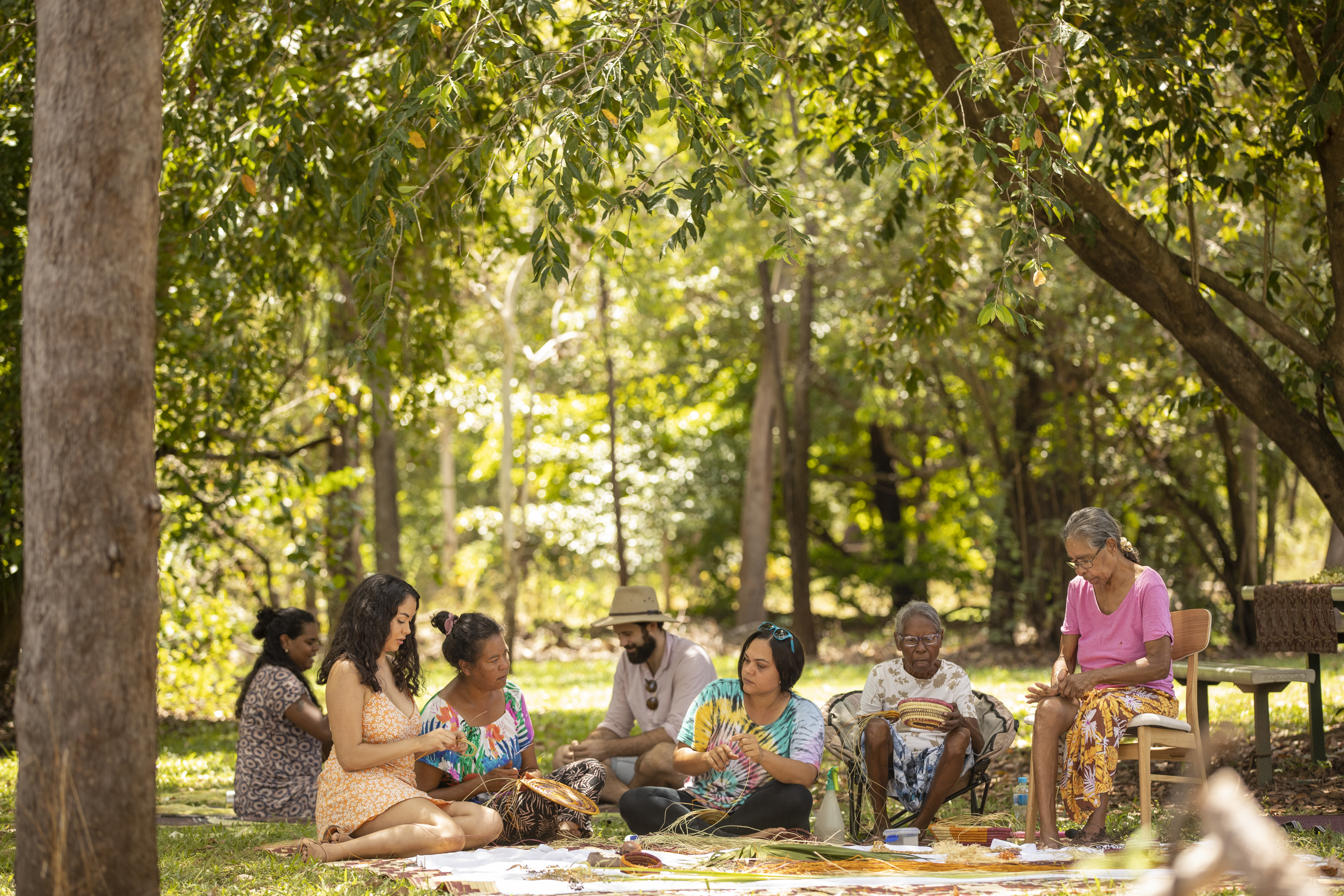 At Warradjan Cultural Centre, culture is not only displayed — it is lived. Traditional Owners and family members of the Murumburr Clan regularly visit the centre to share knowledge directly with visitors. Throughout the year, they offer complimentary weaving workshops, generously passing on skills and stories connected to Country.