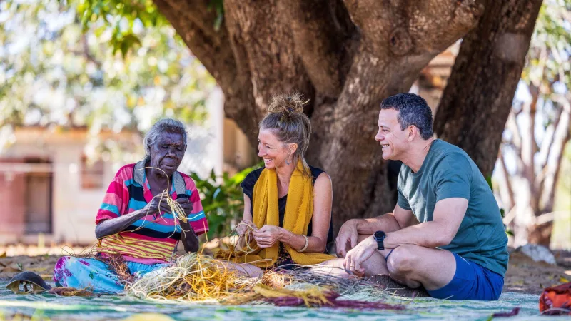 Try your hand at traditional weaving using locally collected dried Pandanus plants dyed with natural colours, or explore Indigenous painting techniques and methods passed down through generations.