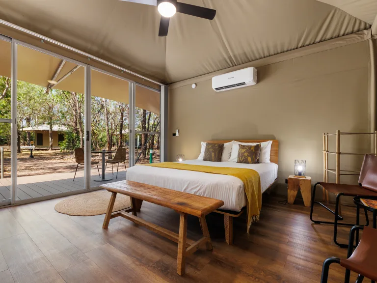 Cooinda's most simple accommodation option offering canvas tents including two single bed stretchers, with comfortable pillows and linen provided.